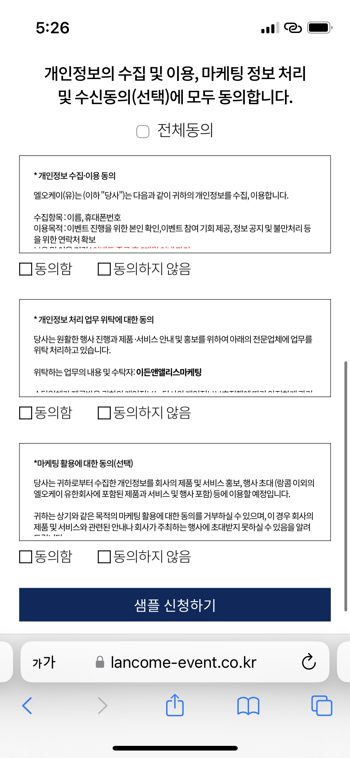 10. 정보를 모두 입력하고 정보처리에 동의하면 완료!!