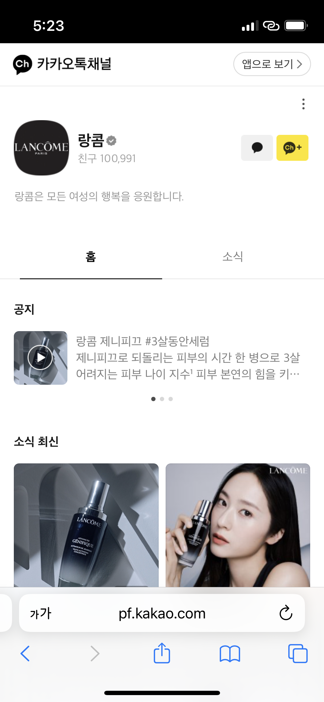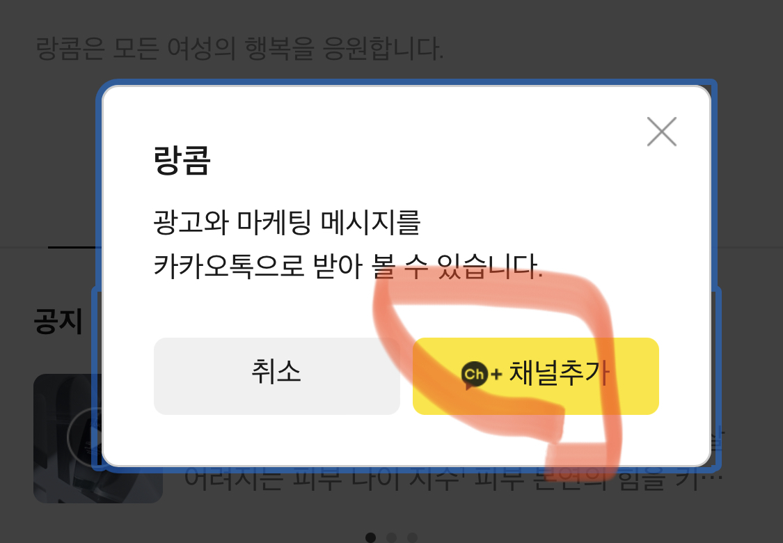 카카오톡 에서 랑콤 채널을 추가하고