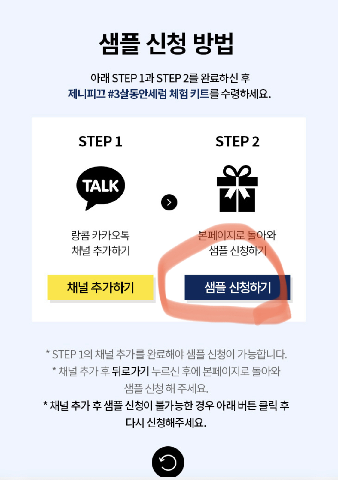 8. 그 후 맨 아래에 있는 샘플 신청하기를 눌러주면